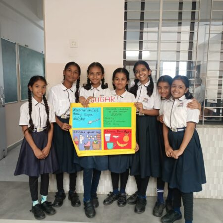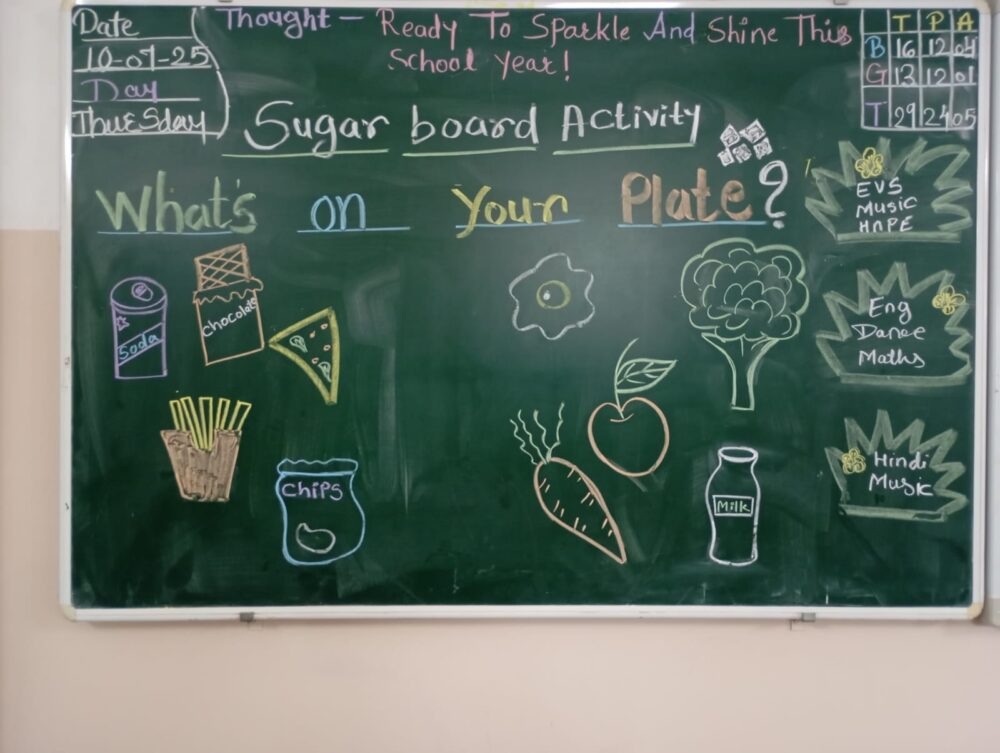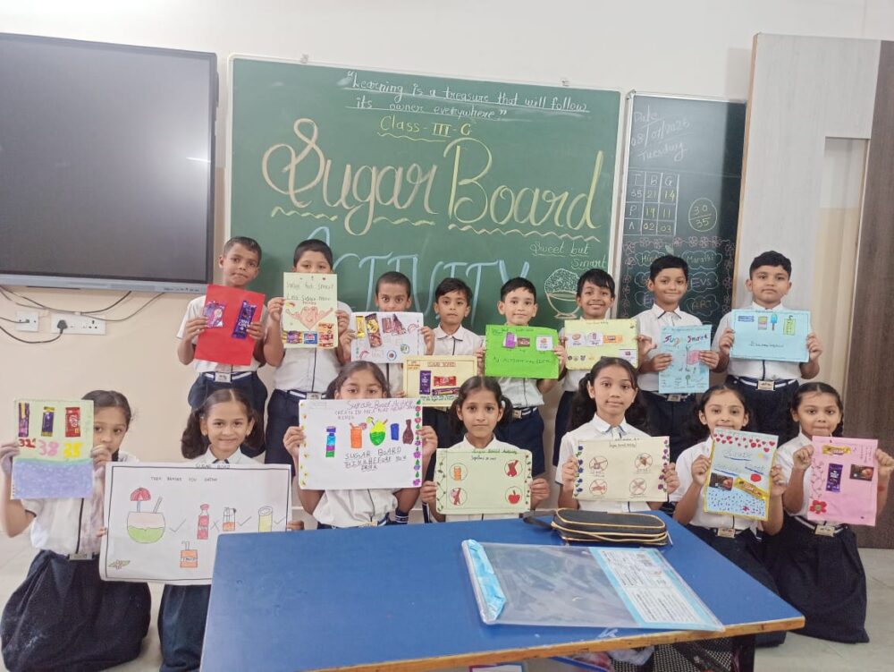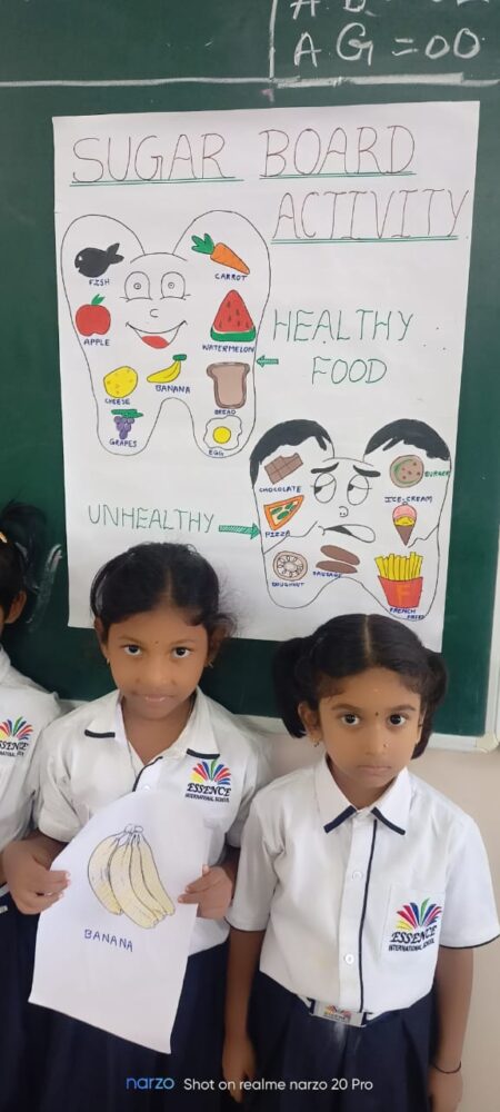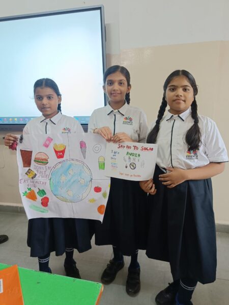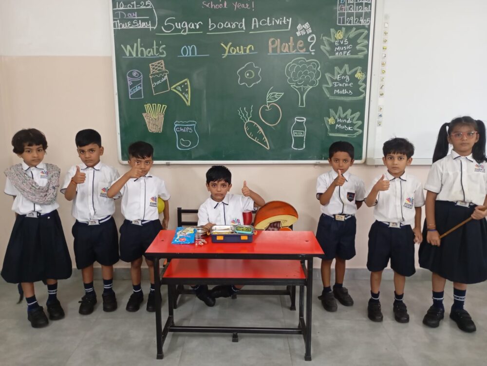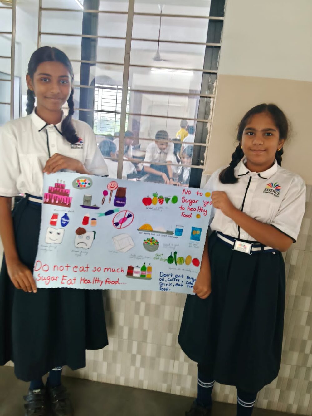 Essence International School conducted a special Sugar Board Activity to raise awareness among students about the consequences of excessive sugar intake and the importance of healthy food choices. The event witnessed active participation from students across various grades.