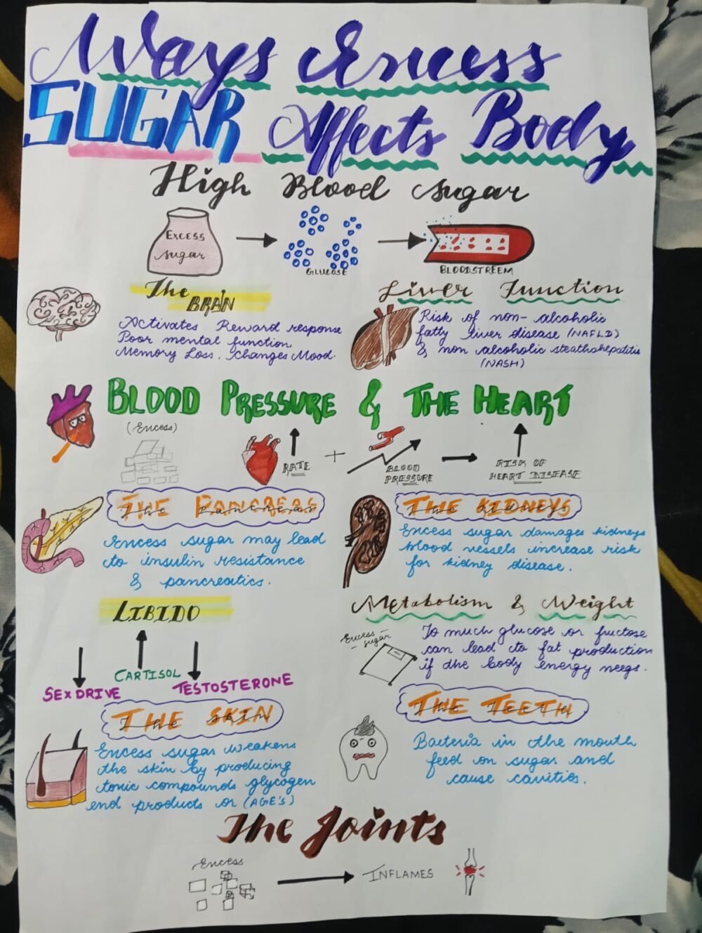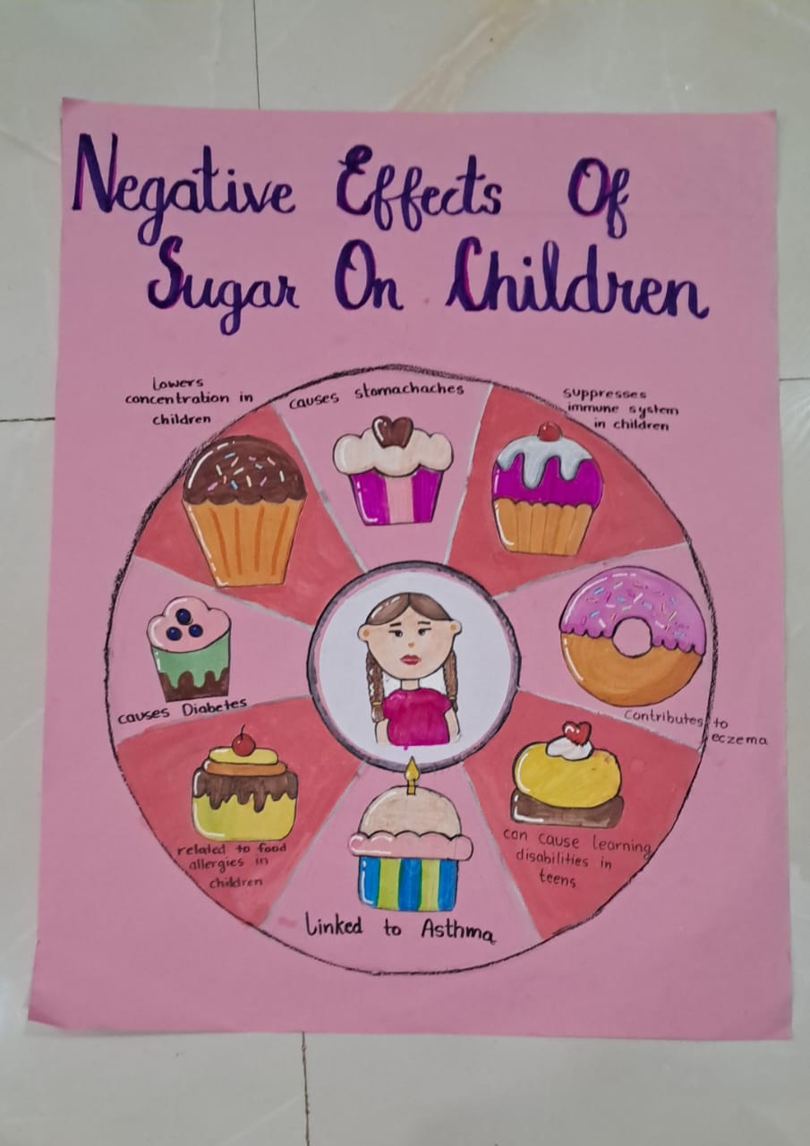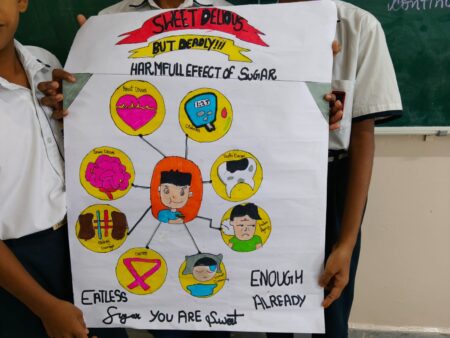 The program began with a nukkad natak (street play) performed by students,of IX and X creatively highlighting the harmful effects of high sugar consumption, such as obesity, diabetes, and tooth decay. This was followed by a report writing session, where students expressed their understanding and views on sugar-related health issues through well-articulated write-ups.