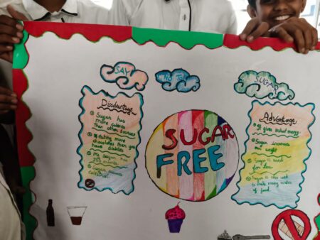 A pledge was taken by all participants to reduce sugar intake and make mindful food choices. The session concluded with a discussion on healthy alternatives to sugary foods, promoting fruits, natural sweeteners, and a balanced diet.